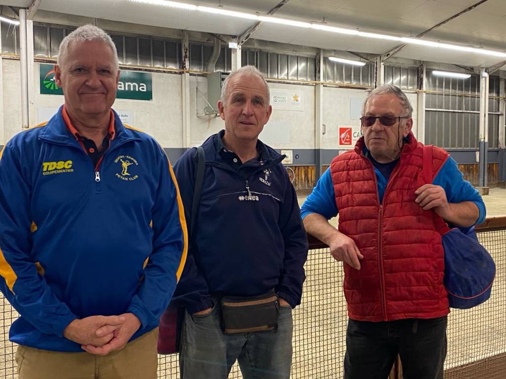 André CABANES, Dominique SOUYRI et Marc PRIVAT Finalistes du Concours B C’est Vendredi 2 février que s’est déroulée la finale du Challenge Vétérans à St Eloi.3 équipes à consonance “club”